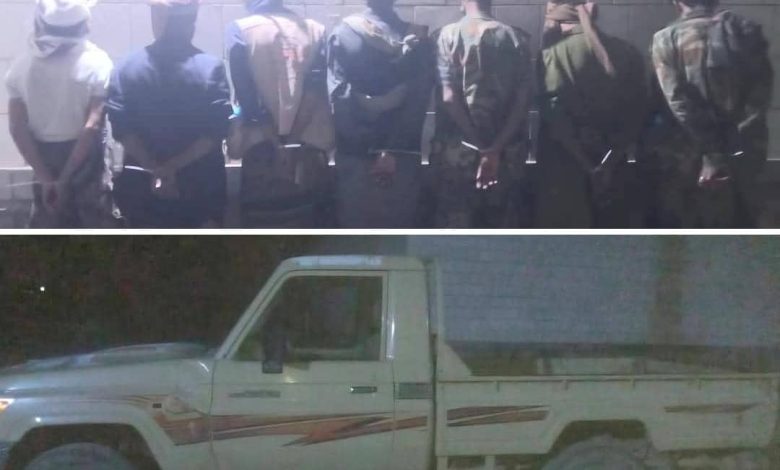 أمن أبين يعلن اعتقال قائد نقطة “أمعين” و5 من أفراده بتهمة الابتزاز والاعتداء على سائق مصري على الخط الدولي