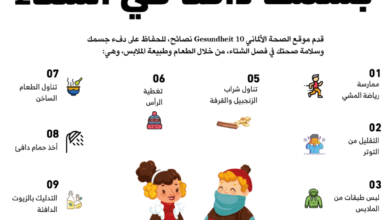 قدم موقع الصحة الألماني Gesundheit 10 نصائح، للحفاظ على دفء جسمك وسلامة صحتك في فصل الشتاء، من خلال الطعام وطبيعة…