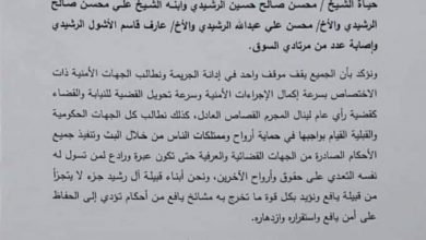 بيان صادر عن سلطان ومشايخ مكاتب يافع بني قاصد