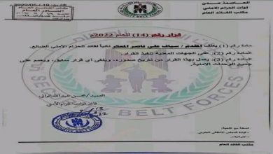 اصدر القائد العام لقوات الحزام الامني العميد محسن الوالي اليوم قرارا بتعيين المقدم سياف علي ناصر المعكر نائبا لقائد الحزام…