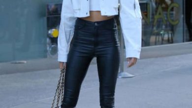 الجاكيت الأبيض القصير مع البنطلون الجلد