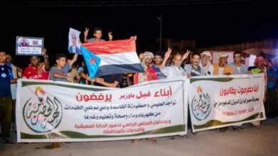 محتجو غيل باوزير يطالبون العليمي بمغادرة حضرموت
