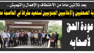 استعادت نقابة الصحفيين والإعلاميين الجنوبيين، أمس الأربعاء، مقرها في مدينة التواهي بالعاصمة عدن، وزفت أسمى آيات التبريكات للوسط الصحفي والإعلامي…