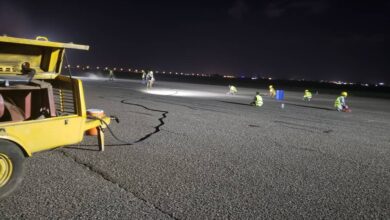بتوجيهات معالي وزير النقل .. البدء بمشروع صيانة وإعادة تأهيل مدرج مطار عدن الدولي