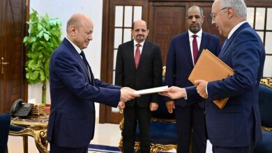 تسلم الدكتور رشاد محمد العليمي، رئيس مجلس القيادة الرئاسي، اليوم الثلاثاء، بقصر معاشيق في العاصمة عدن، بحضور وزير الخارجية وشؤون…