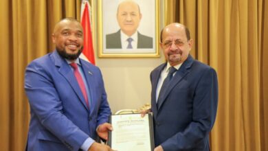 تسلم معالي الدكتور شائع محسن الزنداني، وزير الخارجية وشؤون المغتربين، اليوم، نسخة من أوراق اعتماد سعادة دنكان موليما، سفير جمهورية…