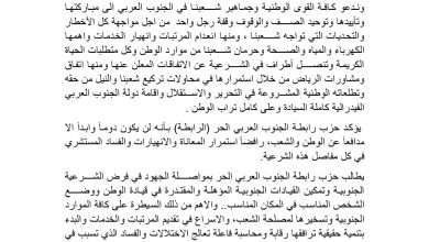 عاجل : بيان جديد صادر عن المجلس الانتقالي الجنوبي